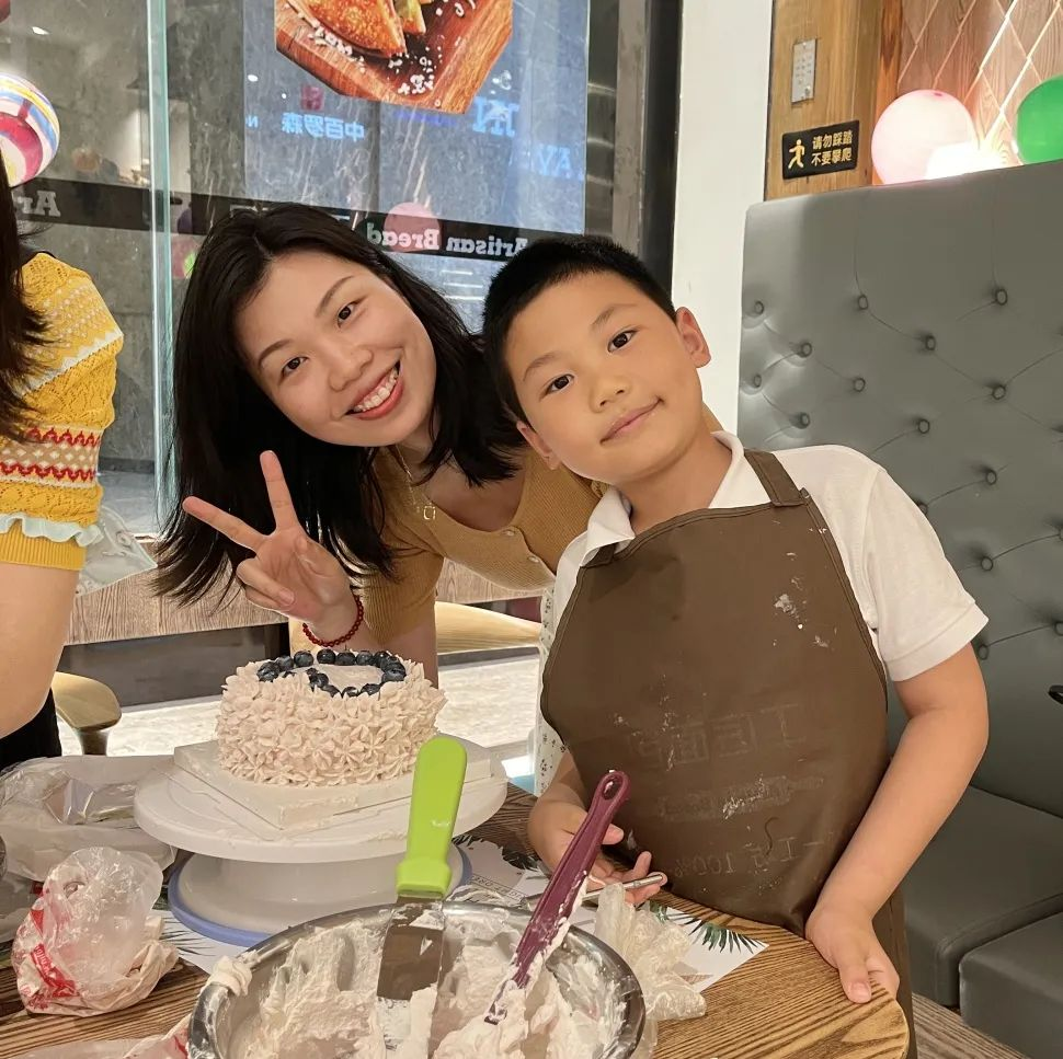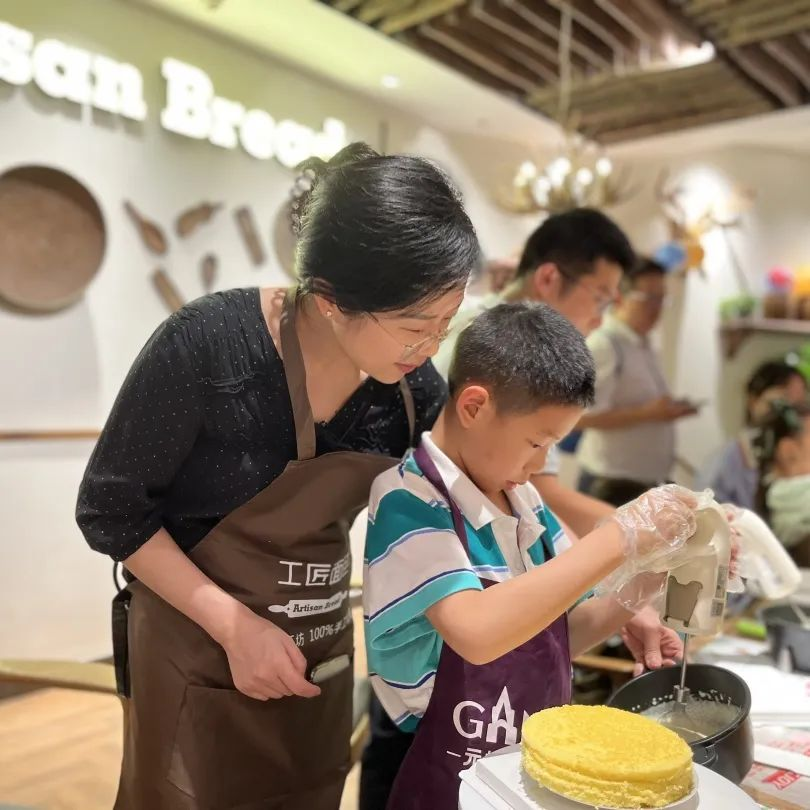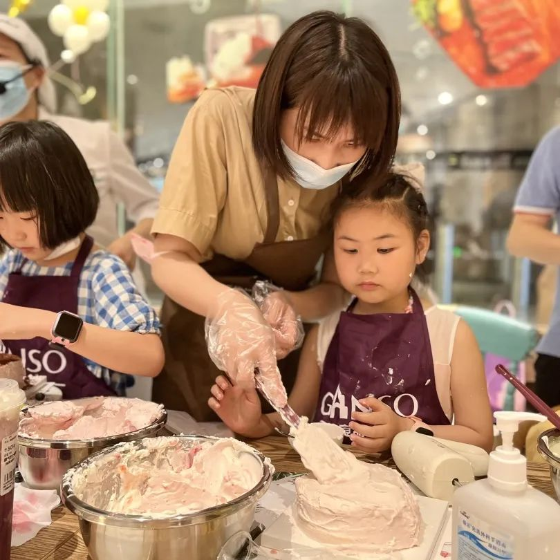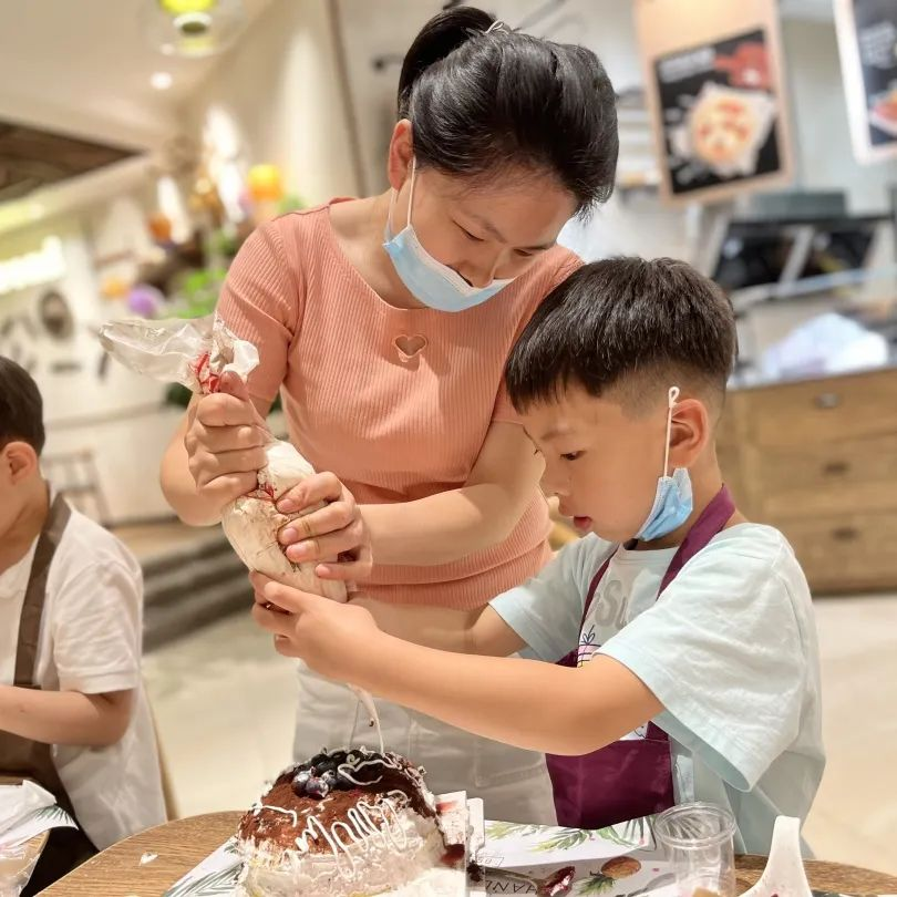 活動(dòng)現(xiàn)場(chǎng),孩子們?cè)诤姹簬煹南ば闹笇?dǎo)和父母的協(xié)助下,精心制作出屬于他們獨(dú)一無(wú)二的美味蛋糕。