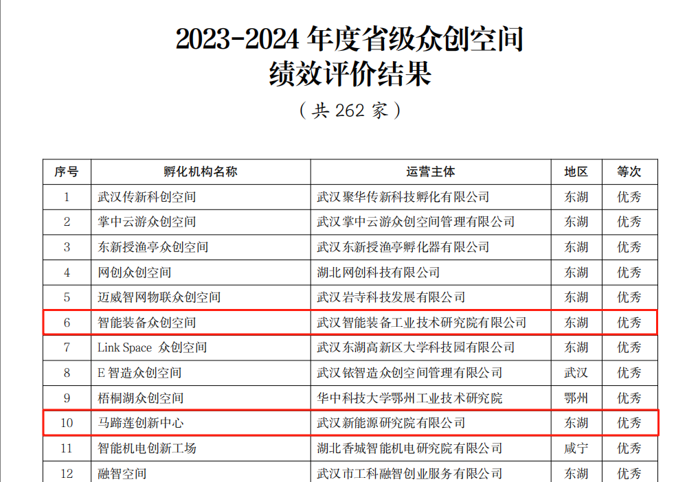 在國(guó)家級(jí)科技企業(yè)孵化器(含7家國(guó)家專業(yè)化眾創(chuàng)空間)績(jī)效評(píng)價(jià)中,武漢光谷生物醫(yī)藥孵化器、武漢光電工研科技企業(yè)孵化器、武漢新能源科技企業(yè)孵化器、光電顯示國(guó)家專業(yè)化眾創(chuàng)空間、智能制造裝備國(guó)家專業(yè)化眾創(chuàng)空間、新能源國(guó)家專業(yè)化眾創(chuàng)空間均獲評(píng)“良好”。
